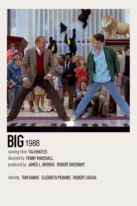اسم فیلم بزرگ یا Big 1988 است. اگر از آن دسته آدمهایی هستید که میخواهید بگویید “کی حوصله سینمای دهه 80 را دارد و من وقتم با ارزشتر از این حرفهاست و... “ باید به شما گوشزد کنم که نباید بازی تام هنکس جوان که برای همین فیلم نامزد اسکار شده را از دست بدهید.