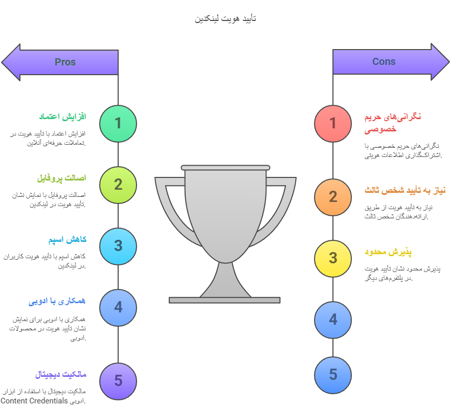 اقدام پیشنهادیدلیلنکته اجراییتأیید فوری پروفایل لینکدیناعتبار فوری نزد همکاران و مشتریانفرآیند < ۵دقیقه، رایگاننمایش Badge در وبسایت/پورتفولیوافزایش نرخ اعتماد اولیه (Trust Signal)از API یا افزونههای تأیید لینکدین استفاده کنیدترکیب با Content Credentialsاثبات مالکیت محتوا + هویتبهویژه برای طراحان، نویسندگان و SaaS