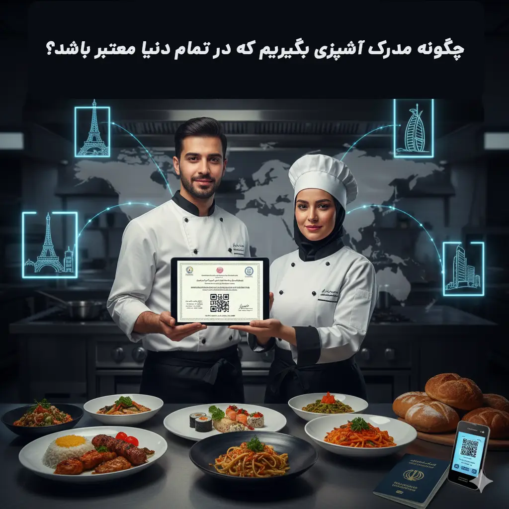 ۱۱. چطور مدرک را چک و استعلام کنم؟ بسیار ساده! به سایت tvto.ir (بخش استعلام گواهینامه) یا worldchefs.org مراجعه کنید. مدارک معتبر دارای کد QR و کد ملی مهارت هستند.