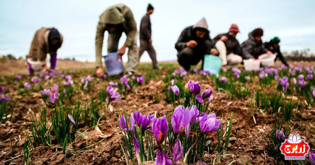 برداشت زعفران فرآیندی دقیق و زمان بر است. کارگران معمولاً در ساعات اولیه صبح و با دقت بالا گلها را میچینند تا رشتهها آسیب نبینند. سپس این رشتههای ظریف با روشهای خاص خشک میشوند تا رنگ، عطر و مواد مؤثره آنها حفظ شود. ماده ای به نام کروسین عامل رنگ، پیکروکروسین عامل طعم تلخ ملایم، و سافرانال عامل عطر ویژه زعفران هستند. این ترکیب سه گانه باعث میشود زعفران، ادویهای بیرقیب در جهان باشد.