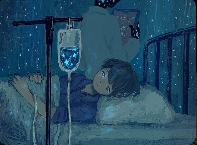 شب کنارش بود، اما او میترسید. او از شب میترسید. تاریک بود و نمیتوانست کسی را ببیند؛ همین بود که حالش را بد میکرد. در شب تنها کاری که می توانست بکند، گریستن بود. نمیخواهد که بمیرد، اما فقط کسانی که نزدیک به مرگ بودند را به آن بخش میفرستادند. بخشی که شب آن را اداره میکرد و ستاره ها پرستار آن بودند.
