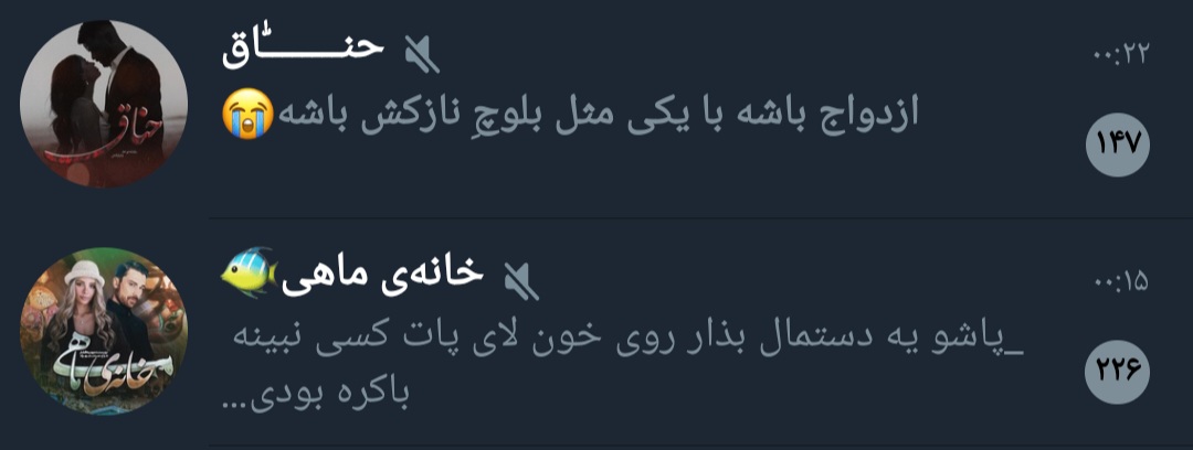 اما برگردیم سر این موضوع، رمانهای تلگرامی اکثرا خودشون بین خودشون تبلیغات راه میاندازن این ماههای اخیر میدیدم توی چند تا کانالی که برای نمونه و جمع آوری اطلاعات توشون عضو بودم دائم از یک رمانی صحبت میشه که توش یک آقای بلوچ هست که چقدر هم ناز دختر کوچولویی که قراره "بکنتش" رو میکشه!! و توی تبلیغات برای این رمان اکلیل میرینن که "وااای ازدواج خوبه با یکی مثل بلوچ باشه که ناز بکشه واااای" ببخشید 😐😂😂😂😂😂