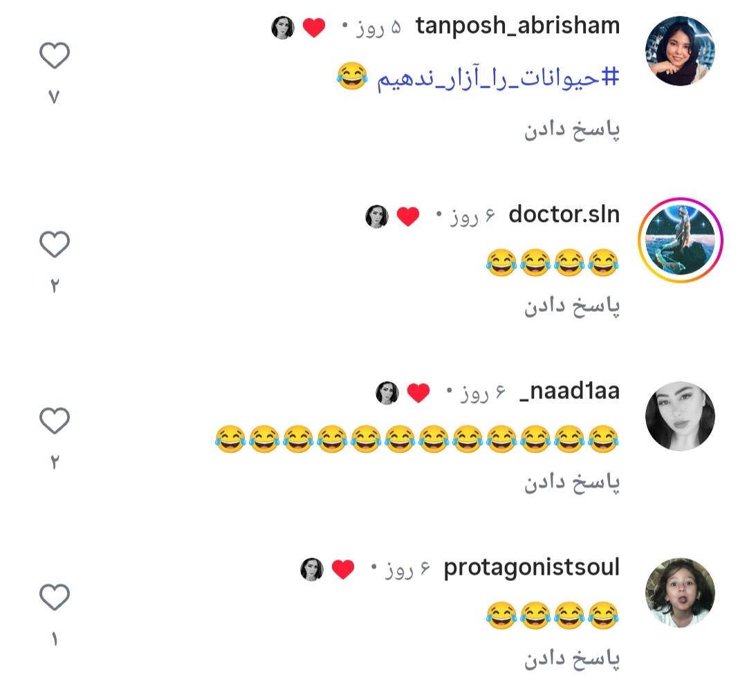 یا اون احمقی که اون بالا نوشته #حیوانات را آزار ندهیم! هرهر ... راستش رو بخواین من اگر یک مرد بودم با دیدن اینها هرچه بیشتر از زنها متنفر میشدم به جای اینکه به برابری باهاشون حق بدم، دلم میخواست بگم همچین محتواهایی خیلی کمه و حالا اینکه یکی دو تا بچه سال عقده ای این چیزها رو میسازن که دلیل نمیشه ما اینقدر گارد بگیریم اما باور کنین این محتواها خیلی بیشتر از این حرفهاست و خدا نکنه اکسپلورر شما بفهمه به این محتوا واکنش (هر نوع واکنشی اعم از علاقه یا نفرت یا خشم) نشون داده باشین اونوقت تمام اکسپلورر شما پر میشه از این محتواهای رقت انگیز!!
