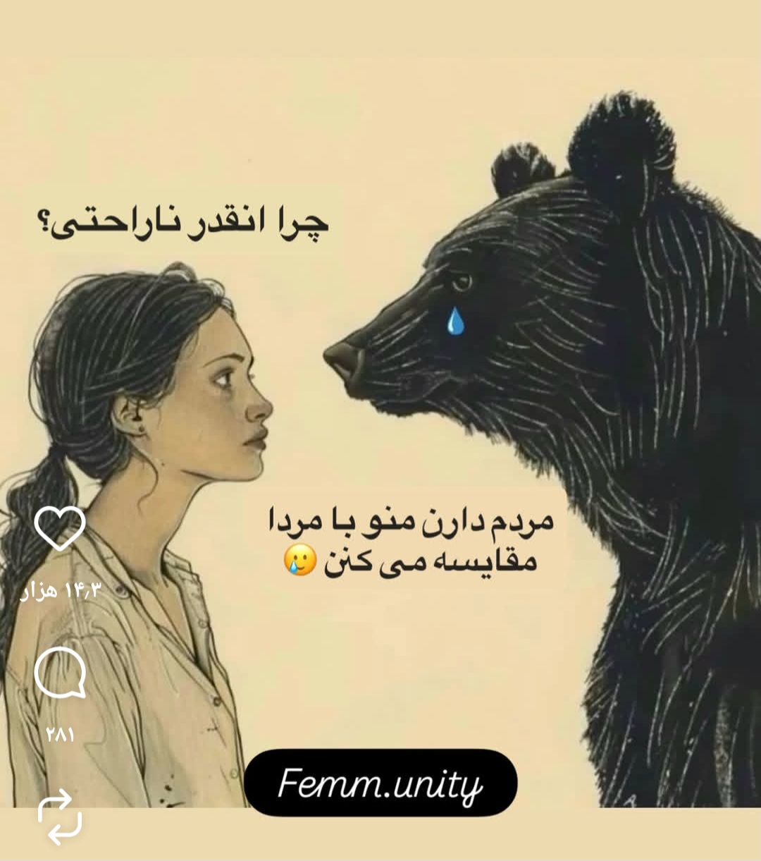 دلم میخواست برای تمام اون ۷۰۰ نفری که با حماقت خودشون کامنت خنده و هر هر گذاشته بودن بگم "زهر ماااار" فقط تصور کنین اگر یک پسر نوجوون یا جوون این محتوا رو ببینه، پسری که داره تمام تلاشش رو میکنه توی این دنیای نامرد واقعا مرد خوبی باشه و آزاری به کسی نرسونه و اونوقت می بینه این ماده نماها با تمسخر مردها دور هم جمع میشن میخندن چه حسی بهش دست میده؟ یا بیاین از یک زاویه دیگه نگاه کنیم، تمام این کامنت ها از طریق پیجهایی گذاشته شده که پشت اون یک انسان واقعی نشسته این خانوم تو دنیای واقعی مطمئنا یک فرد متشخص و محترم هست شاید فامیلتون باشه یا دوستتون یا هم کلاسیتون اما اینجا من چیزی جز یه عقده ای بی فرهنگ نمیبینم، نه اینکه من ادعای فرهنگ داشته باشم اما اینها برخلاف من خیلی ادعای بافرهنگ بودن دارن مطمئن باشین میگین نه؟ کافیه یکی از اینا رو ریپلای بزنین و درباره زشت بودن رفتارشون باهاشون صحبت کنین تا ببینین چطور بهتون حمله میکنن