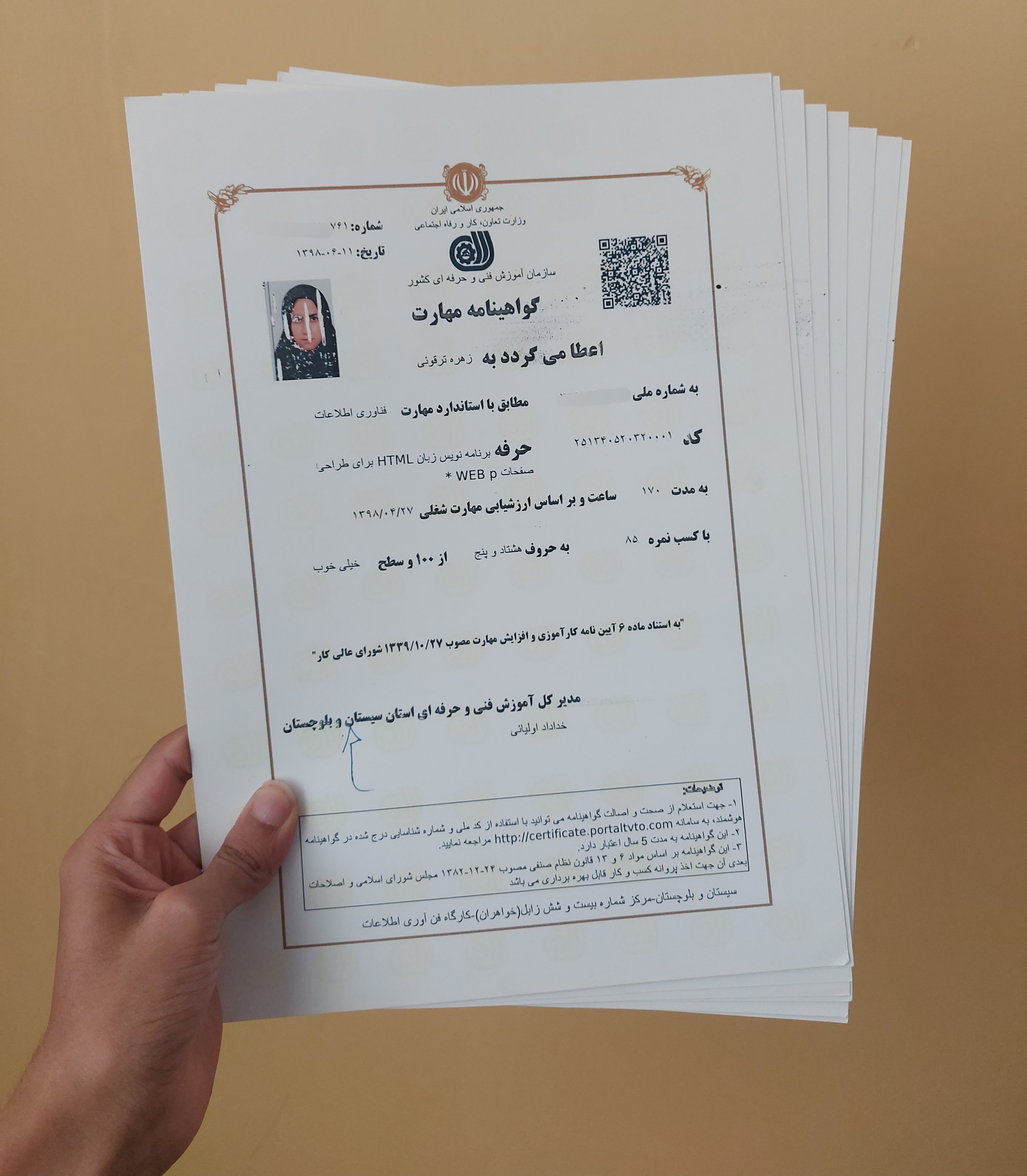 پشت هر کدوم از این مدارک ماهها تلاش نهفته هست، ماهها پیاده روی برای رسیدن به محل آموزش چرا که توی شهر ما سیستم حمل و نقل عمومی و اتوبوس وجود نداره و تنها راه تردد با ماشین هست و از اونجایی که پدرم دائما غر میزد از اینکه من خرج اون رو زیاد کردم تصمیم گرفتم هر روز ۴۵ دقیقه پیاده روی کنم اما دستم رو جلوی اون خوک کثیف دراز نکنم هر روز مثل یک عذاب بی پایان بود ولی من "امیدوار" بودم، امید ... چه واژه قشنگی هست تا وقتی امید داری سختیها به چشم آدم کمرنگ میان