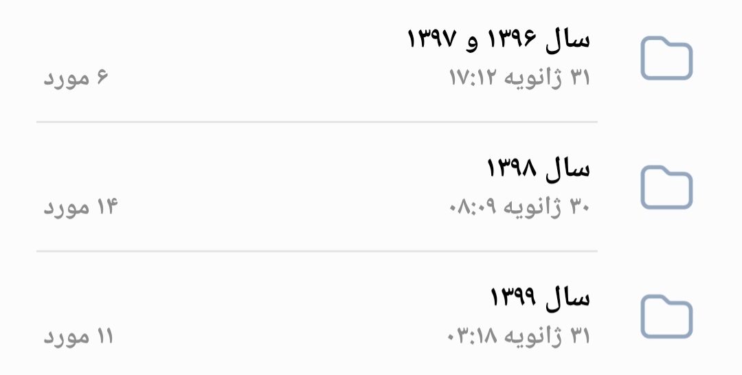 این میل به چیدمان و نظمدهی از بزرگترین تا کوچکترین بخشهای زندگی من رو دربرگرفته و چیزی نیست که بتونم ازش فرار کنم اما چیزی که توی این مقاله میخوام بهش بپردازم اینه که وسواس من در زمانهای مختلف شکلهای متفاوتی به خودش گرفته و من دوست دارم این اشکال مختلف رو اینجا ثبت کنم و به شما نشون بدم، تصویری که بالا میبینین پوشهای هست به نام "سال ۹۶ تا ۹۹" این برای زمانی بود که من یک گوشی ۱۰ میلیونی تو سال ۹۹ خریدم و تمام عکسهایی که با گوشی قبلی خودم داشتم رو دسته بندی کرده بودم و توی یک پوشه واحد با اسم "سالهای ۹۶ تا ۹۹" ریختم که حدود ۳۲ پوشه زیر مجموعه داشت که شامل تمام عکسهایی میشد که از سال ۹۶ تا ۹۹ گرفته بودم و به شکلهای مختلف اون عکسها رو دسته بندی کرده بودم، شیوه دسته بندی من در اون زمان به شکل زیر بود: