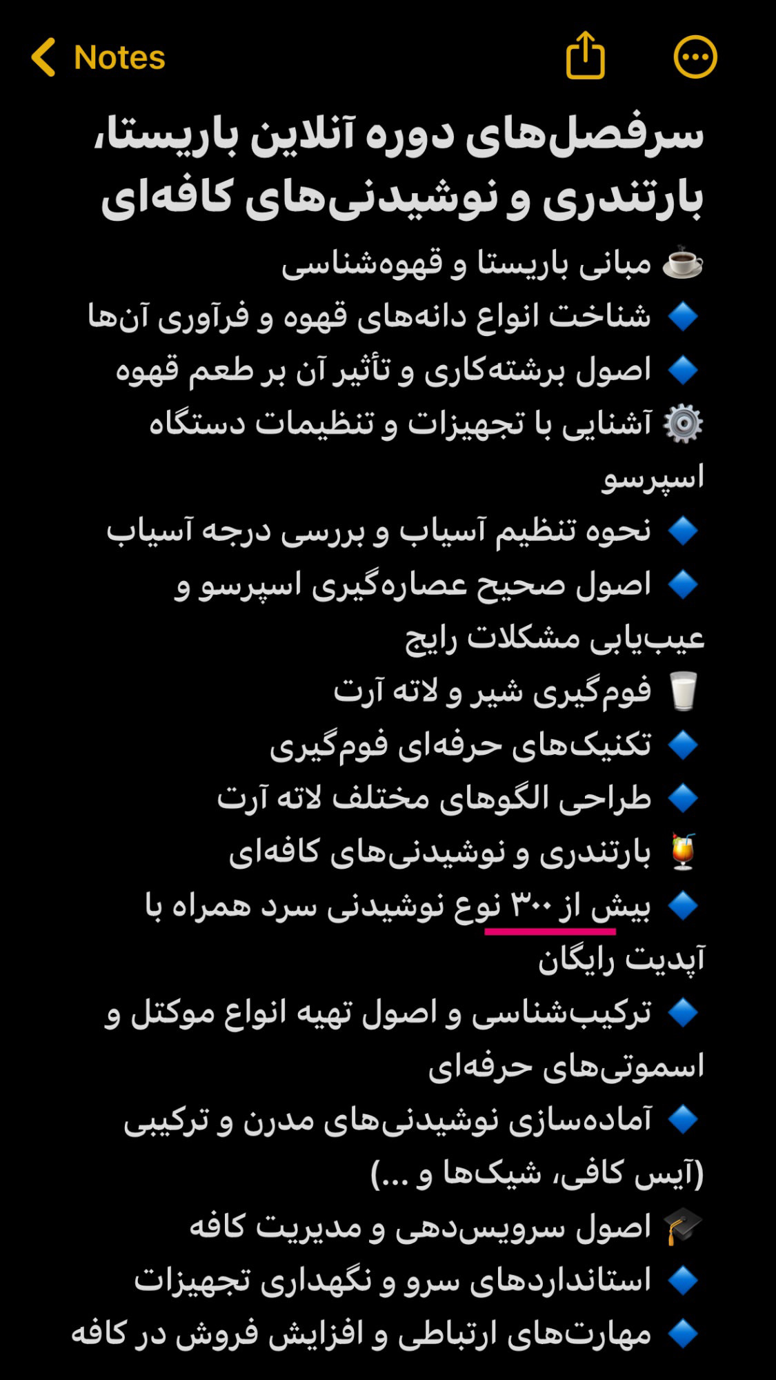 سرفصلهای دوره آموزش آنلاین قهوه و باریستا