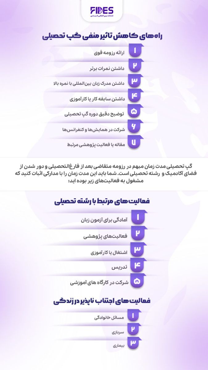 - استفاده از گپ تحصیلی برای افزایش مهارتها و افزایش سطح علمی.