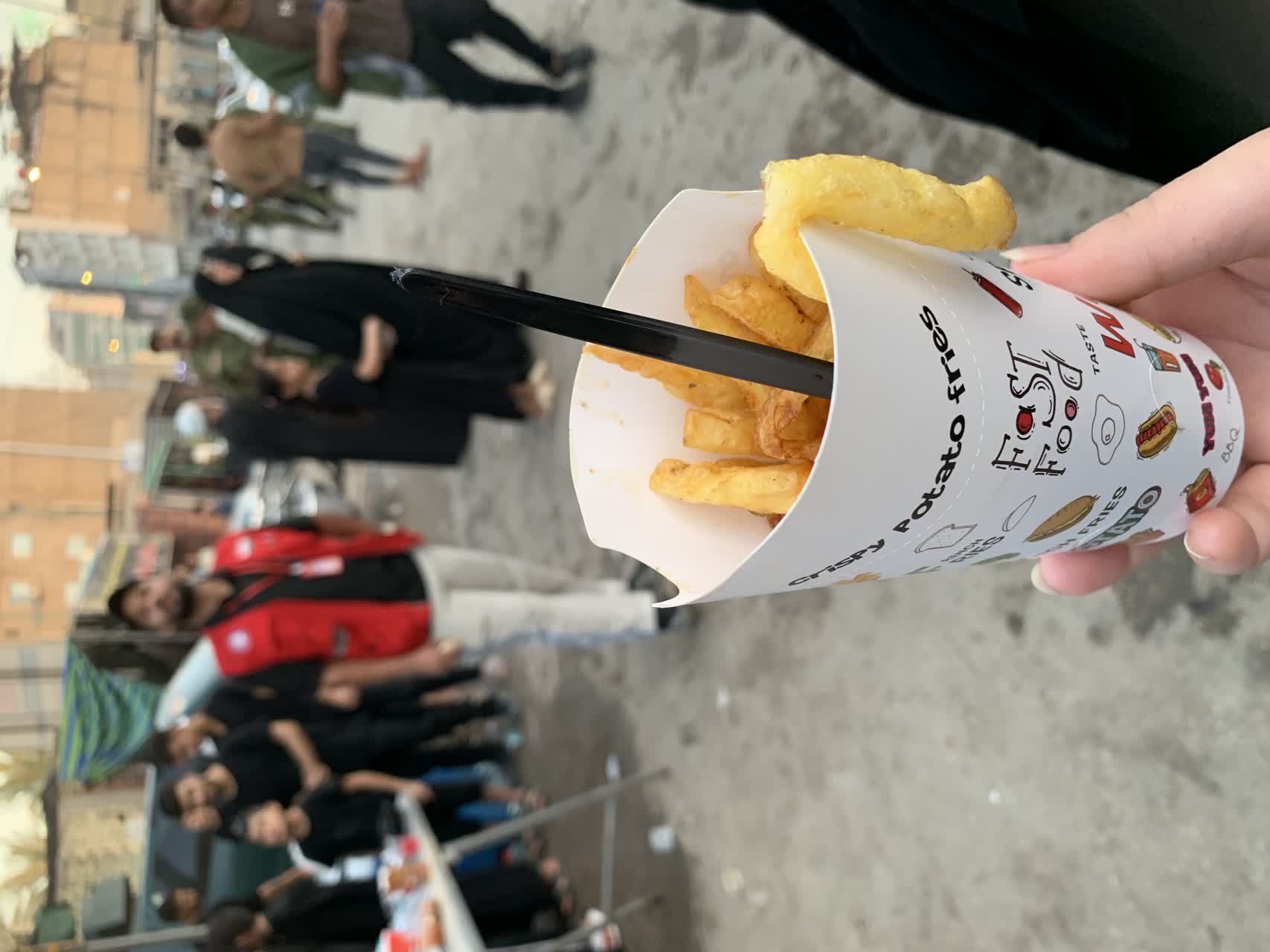 غروب رفتیم بازار ، توی راه سیب زمینی سرخ کرده و مرغ سوخاری میدادن:))) ما سیب زمینی گرفتیم ، هی همه میگفتن از عرب ها غذا نگیرید ولی ما هرچی گرفتیم از عرب ها بود؛))))