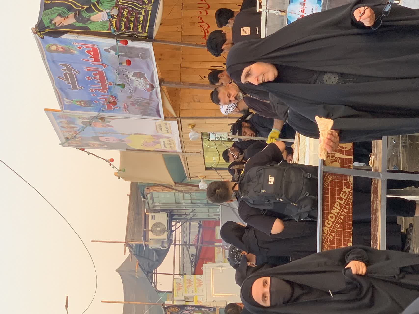 بعد از شام از فرط گرما طاقتمان تاب شده بود:/ جایی هم که بودیم هنوز عمود ها شروع نشده بودن ، ماهم قصد پیاده روی چندان زیادی نداشتیم چون دو نونهال (بخوانید بچه) همراهمون بودن پس رفتیم و ماشینی گرفتیم به سمت کربلا. تا عمود 1000 با ماشین رفتیم. راننده مرد جوانی بود که در طول این همراهی تقریبا یک ساعته به هفت نفر تماس تصویری گرفت و گفت مهمان ایرانی دارم. (حال مارا تصور کنید : شش نفر آدم در یک هیوندا روی هم چپانده شده) مرد با همسرش تماس گرفت و از مادرم خواست با همسرش صحبت کنن🫤 نمدونم چرا واقعا!!!! مادر هم که عربی بلد نبودن از این امر سر باز داشتن. همون اول که نشستیم هم بعد از اینکه عمه درخواست کولر داشتن مردک با خنده ای شیطانی گفت لا کولر ، حقیقتا گرخیدم. مردک جایی هم توقف کرد تا آب بگیریم (البته بعد از اینکه به پنج زبان گفتیم آب میخواهیم... آب ، ماء ، واتر ، سو ، اُو) برامون نانی زرد که داخلش پیازچه داشت هم گرفت ، خوشمزه بود و من رو به یاد کلانه های سقز انداخت 😋