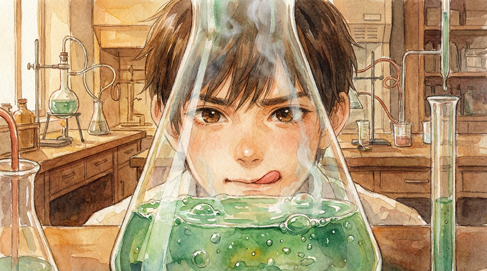 فاز انیشتین گرفتم و شروع کردم! اول ارلنی را برداشتم ، داخلش یک ماده سبز رنگ که اسم سختی هم داشت ریختم،کمی به آن فسفر اضافه کردم. زیر شعله گرفتمش . کمی در آن آب ریختم. پتاسیم پرمنگنات افزودم. همش زدم. به مقدار لازم آهن دو اکسید در آن ریختم و… خلاصه هر کاری کردم فایده نداشت که نداشت و اتفاق خاصی نمی افتاد.