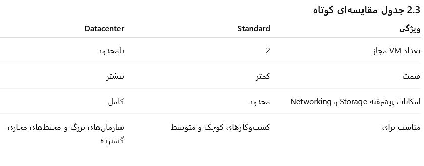 2. تفاوتهای Windows Server 2025 Standard و Datacenter