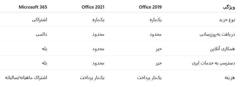 Office 2019: نسخهای که بهصورت یکباره خریداری میشود.