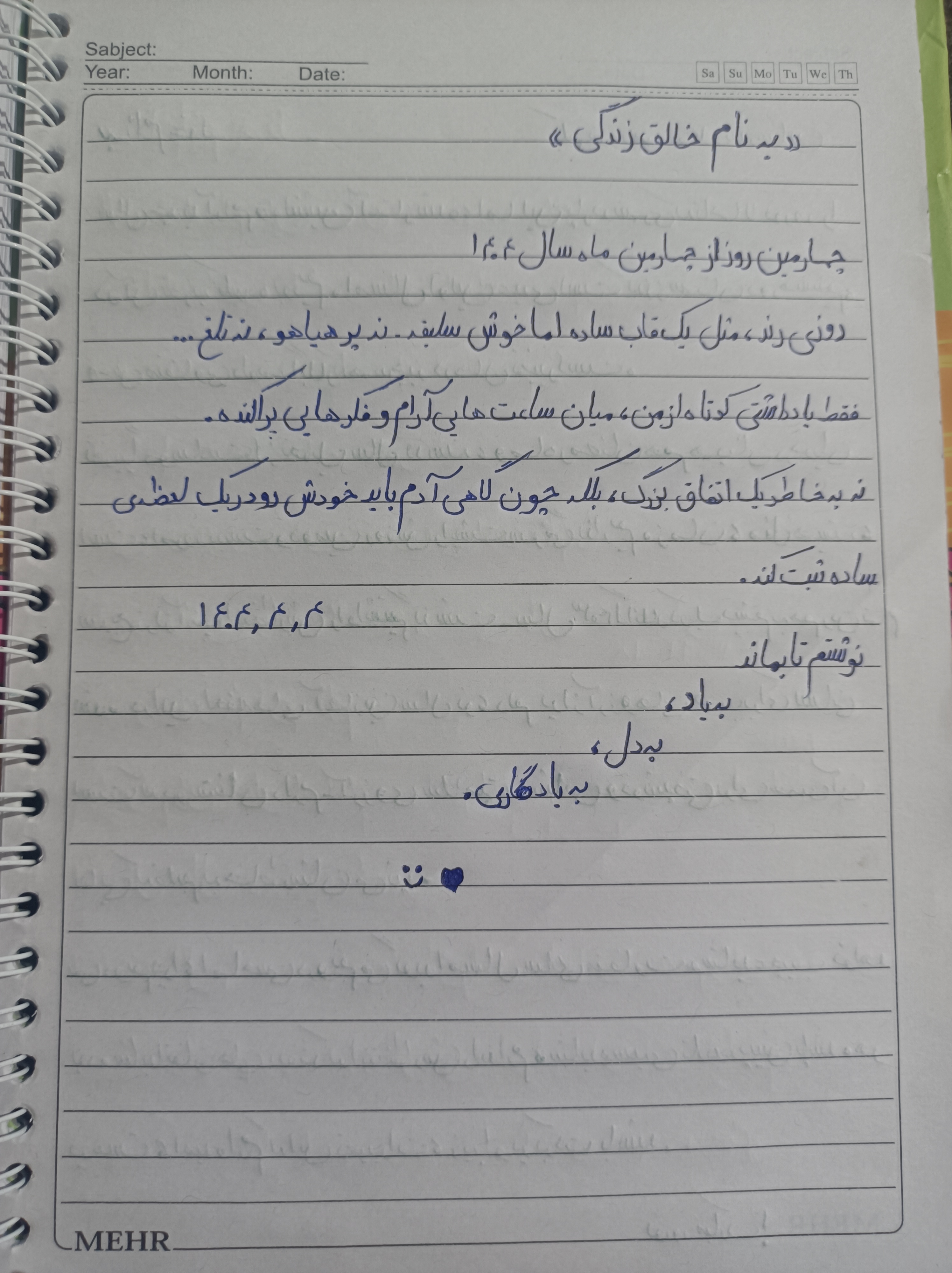 یه صفحه از دفتر خاطراتم ، یادش بخیر چهارمین روز از چهارمین ماه امسال