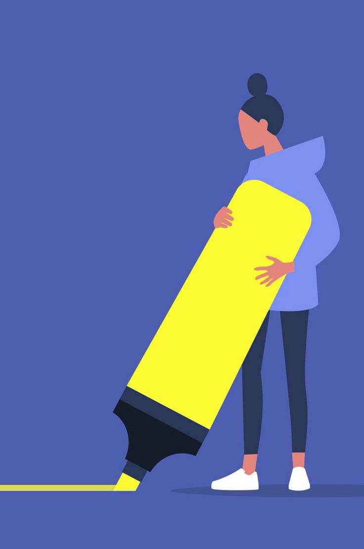 تصویر بالا، فیگوری انسانی را نشان میدهد که یک ماژیک هایلایتِ غولپیکر را در آغوش گرفته و بر سطحی تیره خطی روشن ترسیم میکند. این تصویر، فراتر از یک طراحی گرافیکی ساده، میتواند بهعنوان یک استعارهٔ بالینی برای فهم نحوهٔ مواجههٔ مراجع با تجربههای درونی، روایت زندگی و مسئولیت انتخاب مورد استفاده قرار گیرد.