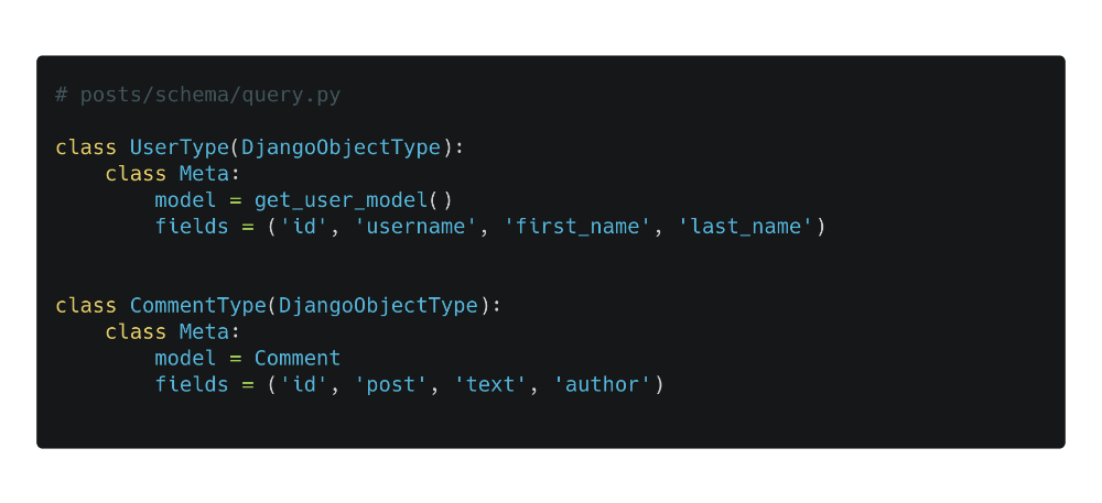 ابتدا دو تایپ گرفکیوال برای یوزر و کامنت تعریف میکنیم: