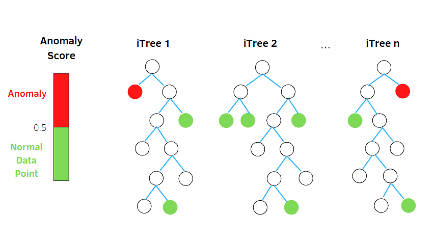 الگوریتم iForest به جای آنکه برای ساختن یک مدل نرمال تلاش کند، ابتدا نقاط غیرعادی و ناهنجار را شناسایی و از مجموعهٔ داده جدا میکند. این الگوریتم در ابتدا یک ویژگی (یک بُعد) را به صورت تصادفی انتخاب میکند و سپس یک مقدار تصادفی در فاصلهٔ بین کمینه و بیشینهٔ مجموعهٔ داده انتخاب کرده و با یک خط جداساز آن بُعد را جدا میکند. بدین ترتیب یک مجموعهٔ درخت ایجاد میشود و درختهایی که طول کمتری دارند به عنوان دادهٔ پرت و ناهنجاری شناسایی میشوند. لازم به ذکر است که iForest یک الگوریتم یادگیری بدون نظارت (Unsupervised Learning) به حساب میآید. در بخش بعدی مقاله با نحوهٔ فعالیت این الگوریتم بیشتر آشنا خواهیم شد.