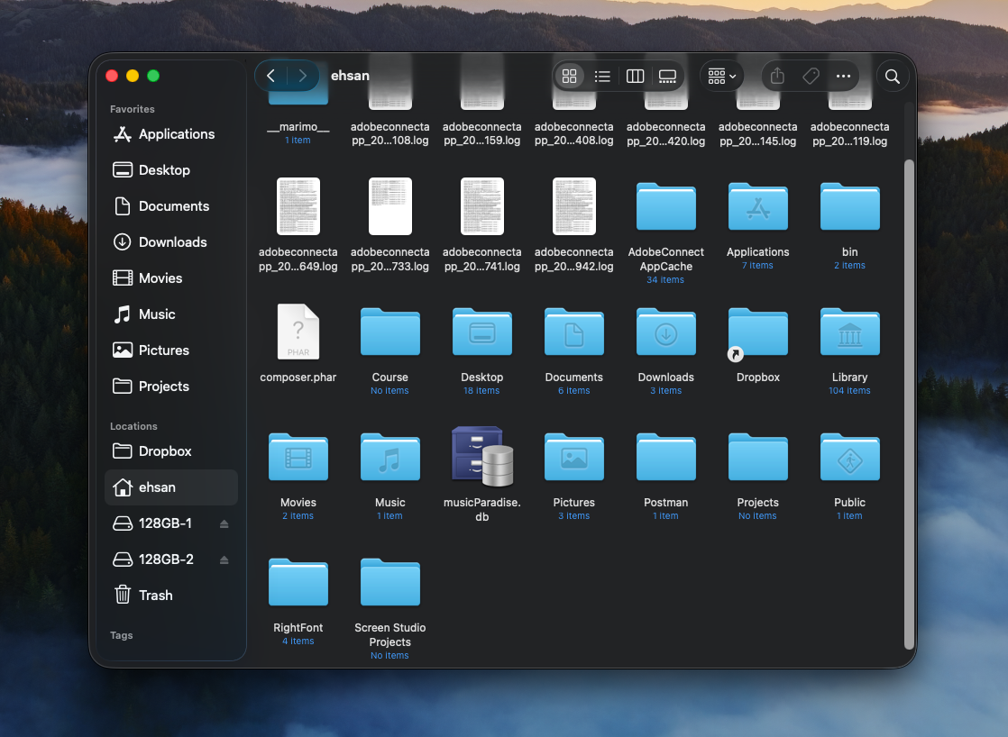 الان توی هر کدوم از این پوشه هایی که در آوردیم، ۲ تا پوشه به نام blobs و manifests وجود داره. توی سیستم عامل مک وارد این مسیر میشیم(اسم لپ تاپت همون ehsan هست):