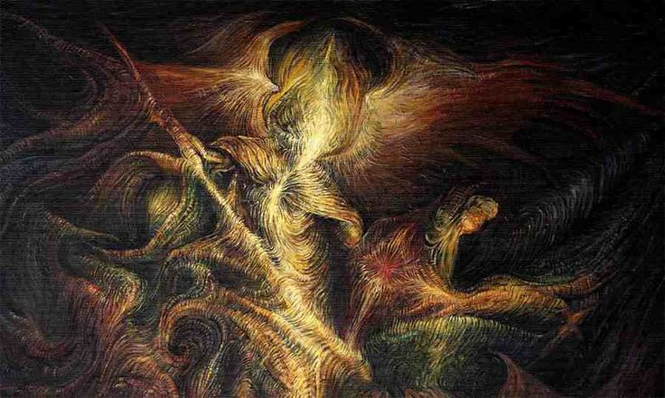 آنگاه آن گوی متعال به شمایل اسبی سرخ ، دو شاخ که چهار بال خفاشین داشت و یال هایش گذاره آتشی شعله زا بودند تجسم یافت ...