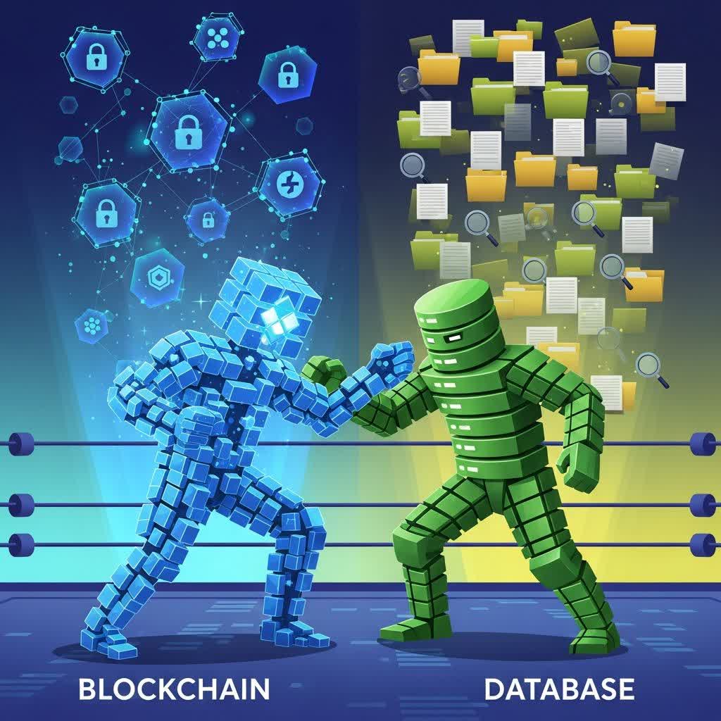 بلاکچین مثل یه جلسه خانوادگیه که همه باید نظر بدن تا یه تصمیم بگیریم، واسه همین وقتگیر ولی مطمئنه. دیتابیس مثل اینه که پدربزرگ خانواده رئیس باشه و هر تصمیم رو سریع بگیره، اما باید بهش اعتماد کنیم که درست تصمیم بگیره.