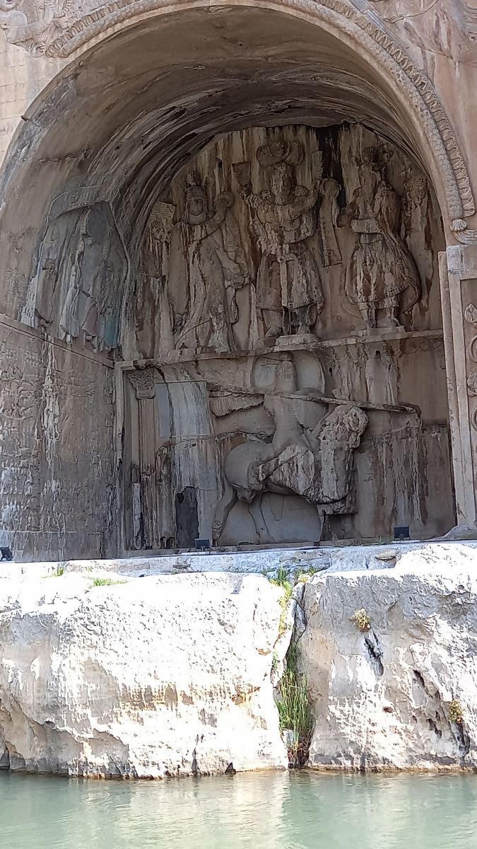 جای خوشگلی بود و سرسبز. آب خوبی دارد کرمانشاه. و خب آب است که آبادانی می آورد. البته فکر میکنم این آب به خاطر کوه های پر برف اطراف این شهرهاست. همدان هم کوه پر برف زیاد داشت. این طاق بستان مربوط است به دوران ساسانی. همین خسروپرویز که در مجموعه خسرو و شیرین. عاشق شیرین است یک پادشاه ساسانی بود دیگر مردک. در آن هوای گرم با آفتاب مرگکی و داغان خواهر و دامادمان رفتند سراغ یکی از راهنماهای مجموعه و این بنده خدا هم که منتظر یافتن گوش مفت بود. شروع کرد به توضیح دادن سنگ نگاره ها و بررسی تاریخ ساسانیان و یونان و خیلی چیزهای دیگر. خیلی حرف میزد و چون به گرمای هوا اعتراض کردم که زودتر توضیحش را بدهد گفت ما چه بگوییم که روزی ده ساعت در این گرما وامیستیم و به خلق خدمت میکنیم و منم که پایم از همان بیستون نوردی بسته بود و زود خسته میشدم. خیلی حرف هایش را گوش ندادم و چند تا عکسی گرفتم و رفتم گوشه ای نشستم. زینب هم که حوصله نداشت آمد با ژست به من میگن بتمنی آمد بهم ملحق شد.