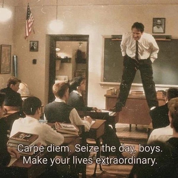 جمله از کتابِ «انجمن شاعران مرده» آمده؛ بار ها این کتاب را خواندهام. امّا نمیدانم چرا آن هنگام که خود کتاب را میخواندم، معنای این جمله با من چنان که باید نجوشید.