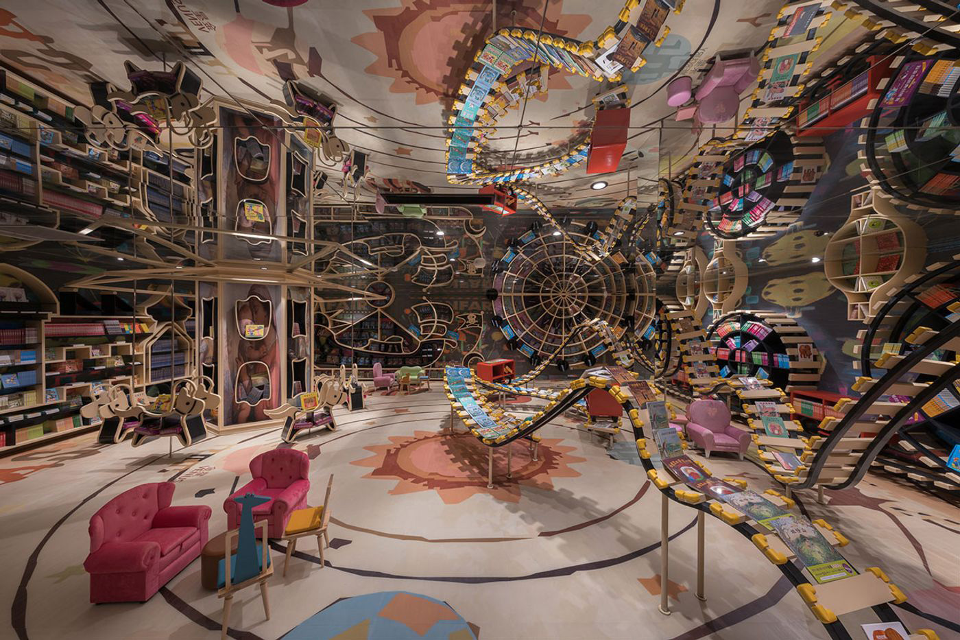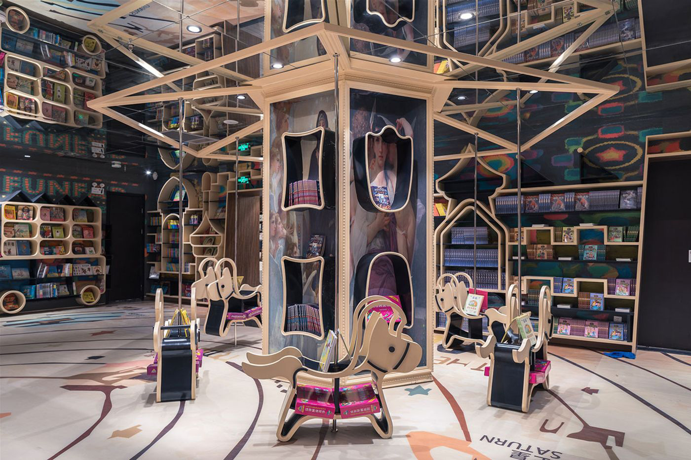 این مکان بزرگ و منحصر به فرد، با سقفهای آینهای، هیجانی وهمآلود و سرگیجهآور را برای بازدیدکنندگان ایجاد میکند. حضور در این کتابفروشی جادویی مثل تماشای یک فیلم تخیلی سفر به فضاست. برای همین، قدمزدن در این کتابفروشی خارقالعاده بازدیدکنندگان را از واقعیت روزمره خود خارج کرده و به قلمرویی فراگیر از خیالپردازیهای بیحد و مرز میبرد.