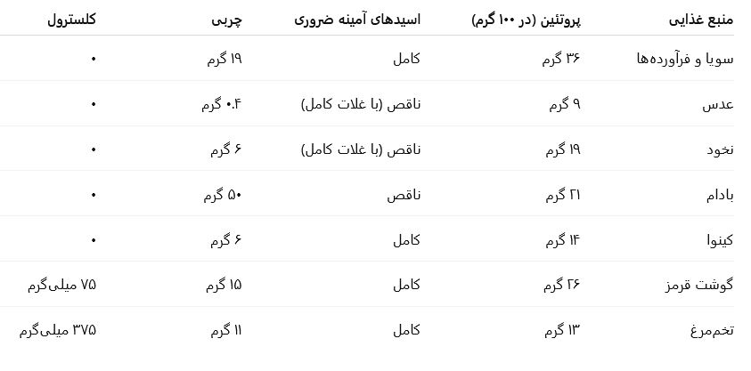 منابع پروتئینی گیاهی و جدول مقایسه با حیوانی