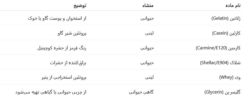 E441 (ژلاتین): از پوست و استخوان حیوانات تولید میشود.