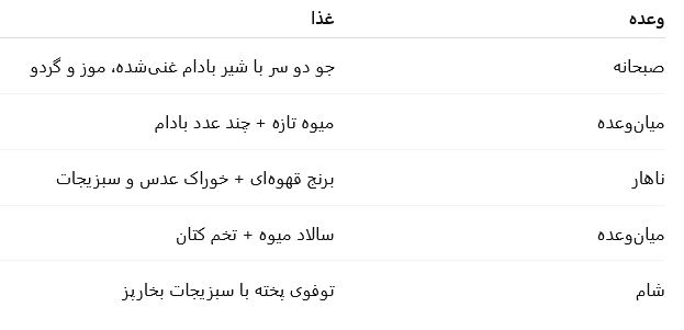 ۶. برنامه غذایی نمونه روزانه برای کودک وگان