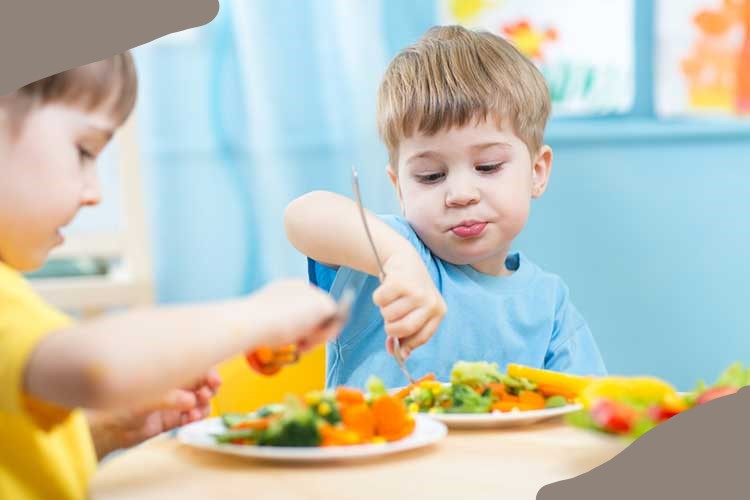 وعدهها و میانوعدهها را به گونهای تنظیم کنید که کودک کالری کافی دریافت کند، به ویژه اگر حجم غذاهای گیاهی زیاد باشد و کودک احساس سیری کند پیش از تأمین کافی کالری.