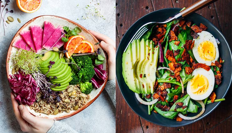 در رژیم وگان: غذاهای گیاهی مختلف میتوانند پخته، سرخشده، حرارتدیده یا فرآوریشده باشند (مثلاً نان سبوسدار، توفو، برگر گیاهی، شیر گیاهی).