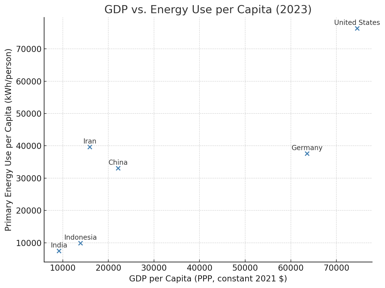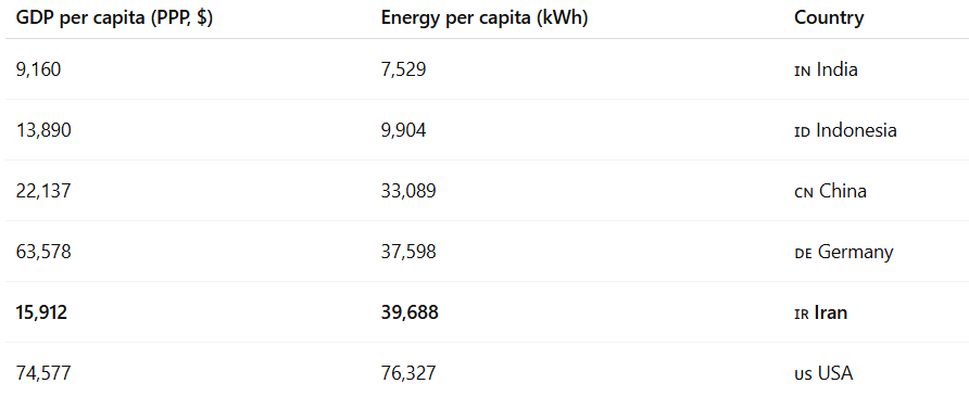 کشورهایی مثل 🇩🇪 آلمان و 🇺🇸 آمریکا با مصرف انرژی مشابه یا حتی کمتر از ایرانGDP سرانهای چند برابر ایران دارند.