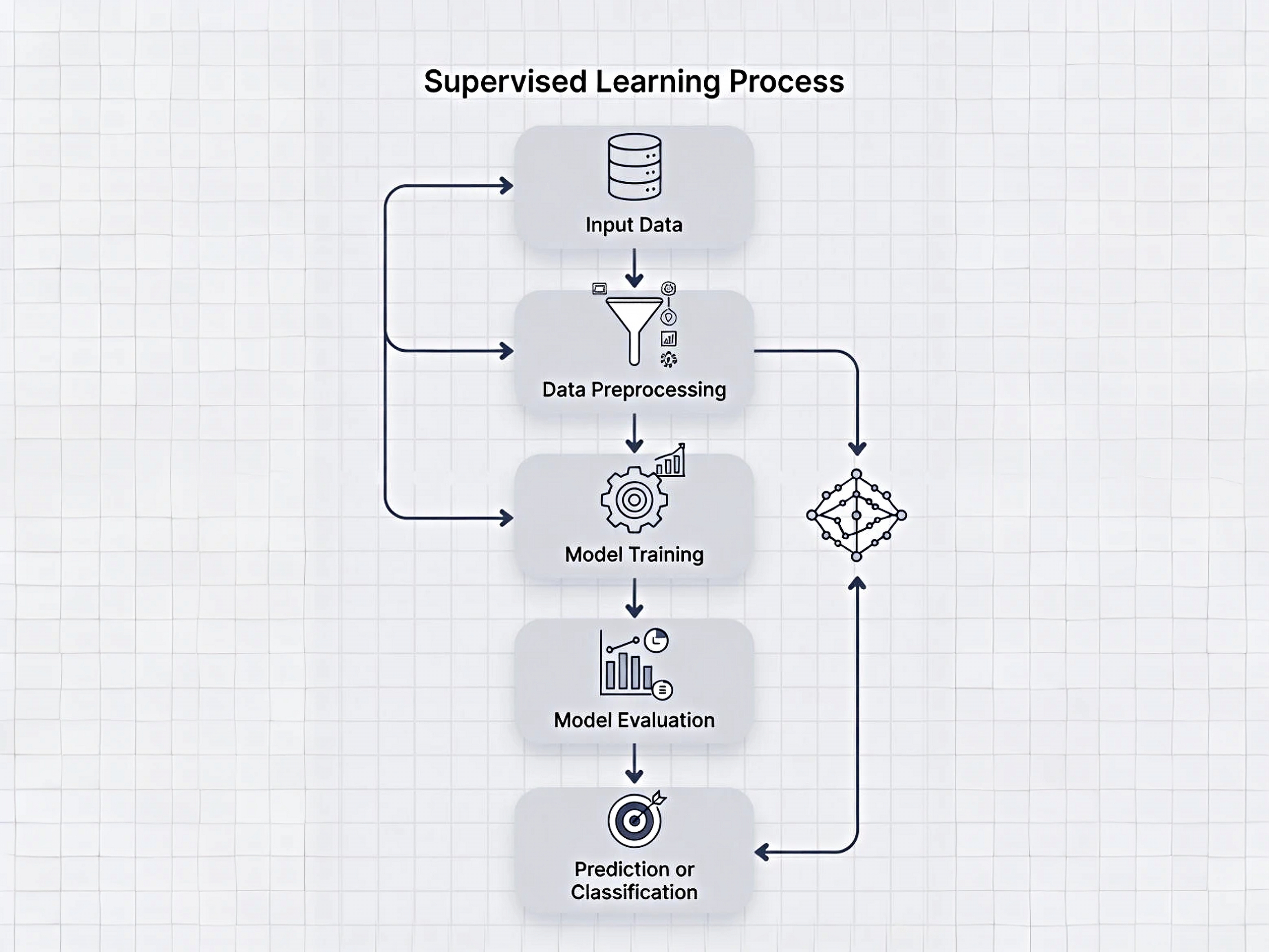 پس به صورت کلی میتوانیم بیان کنیم هرگاه در عملیات یادگیری خود دادههایی با برچسب به رایانه یا به صورت دقیقتر الگوریتم یادگیری میدهیم دارای برچسب باشد، آنگاه آن رویکرد یادگیری با نظارت است چراکه به صورت دقیق به الگوریتم گفته میشود چه چیزی را فرا بگیرد.