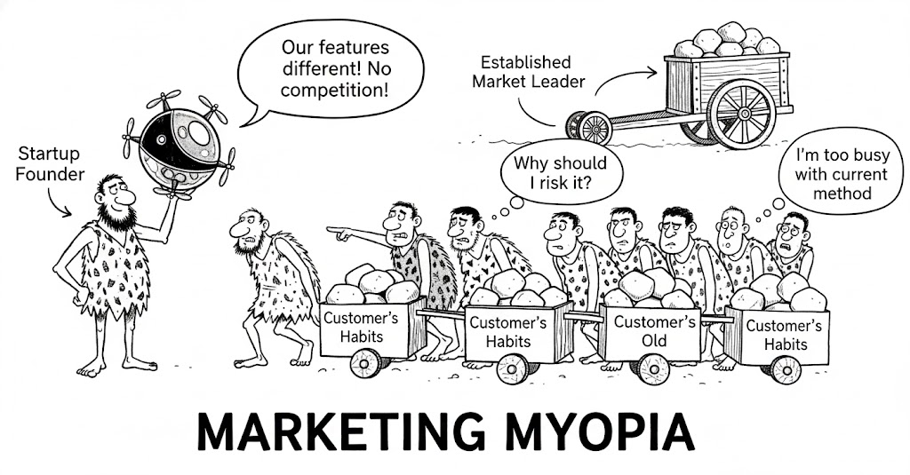شاید سرویس شما «نوشابه» نباشد، اما اگر مشتری تشنهاش باشد، آبمیوه رقیب شماست. دوست من فکر میکرد چون فیچرهایش با رقیب قدیمی فرق دارد، پس در یک لیگ دیگر است. اشتباه محض!