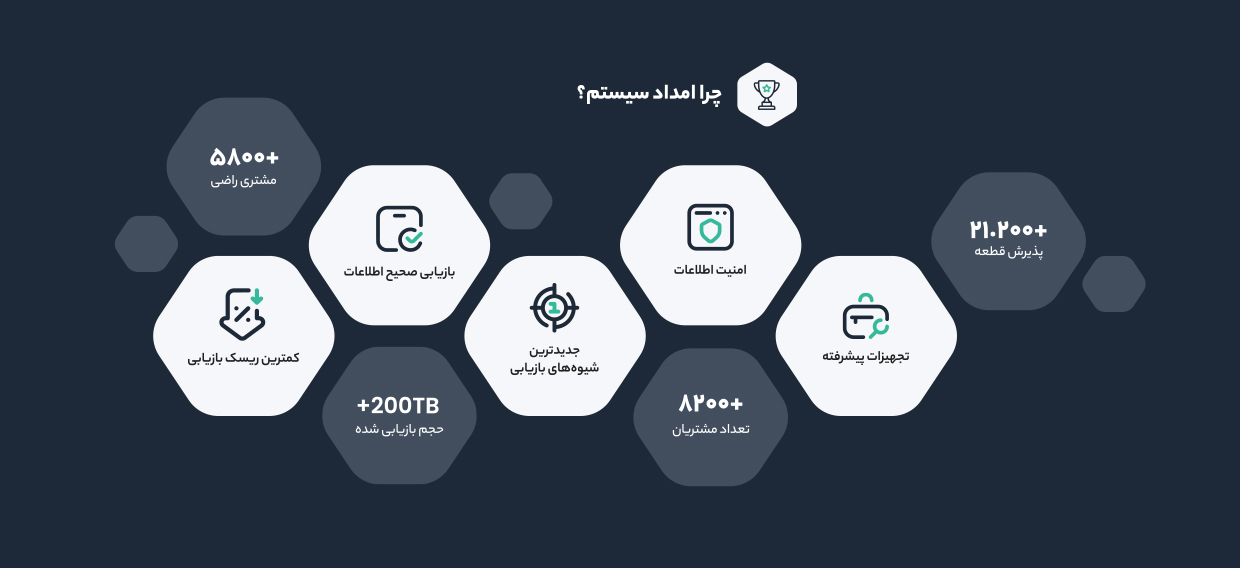 باعث شده روشهای ریکاوری با دقت بالا و کمترین ریسک انتخاب شوند. این تجربه عملی چیزی نیست که صرفاً با ابزار یا نرمافزار به دست بیاید و حاصل بیش از بیست سال تجربه و انجام پروژه های متعدد و موفقیت آمیز است.
