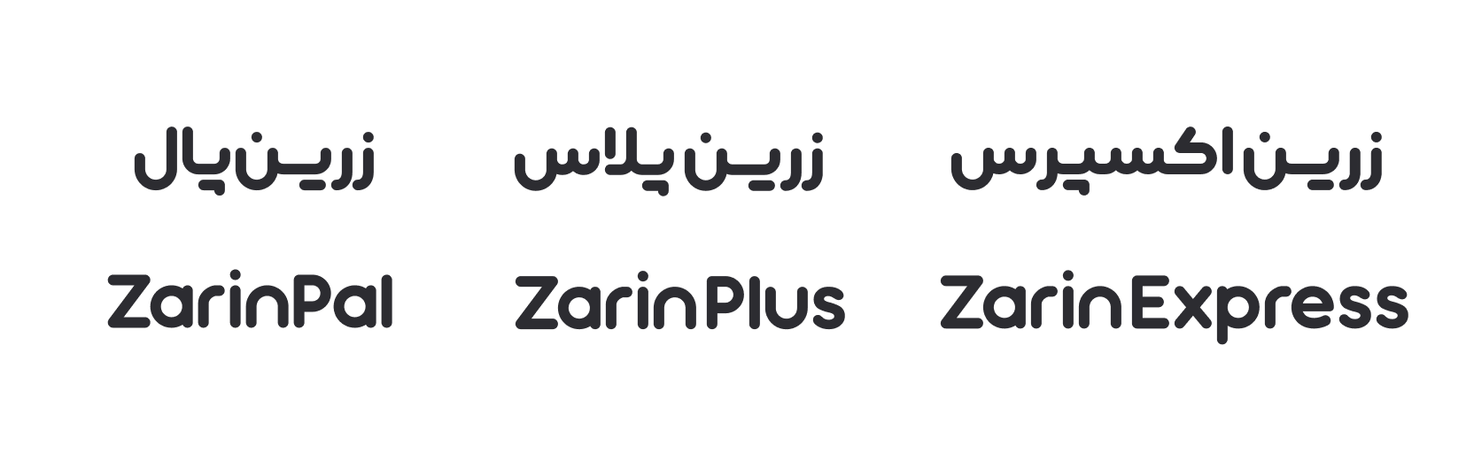لوگوتایپ همهی محصولاتِ خانوادهی زرینپال به دو زبان فارسی و انگلیسی، با ضخامتی ثابت و گوشههایی نرم ترسیم شدهاند و دارای حداقل جزئیات هستند.