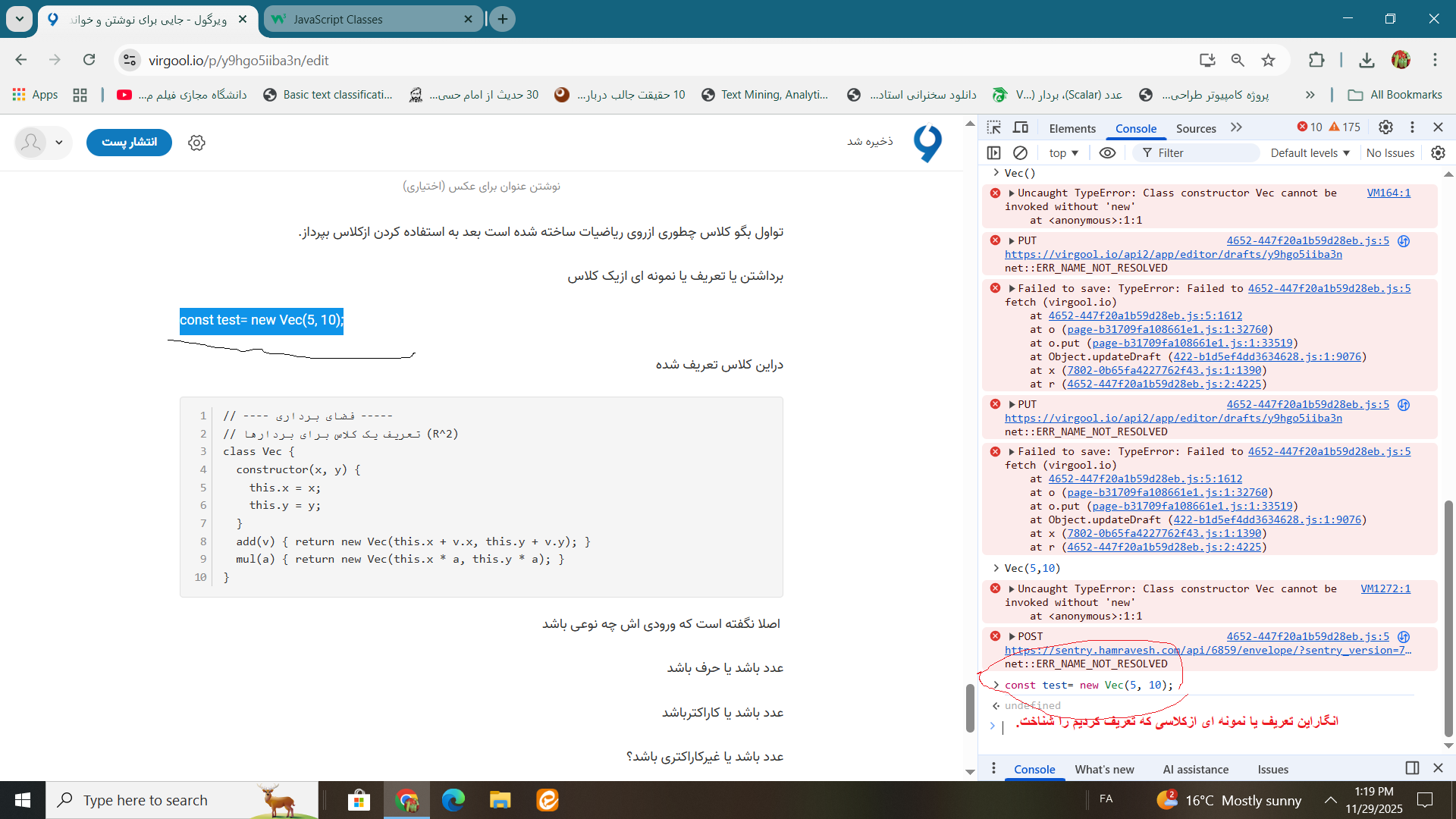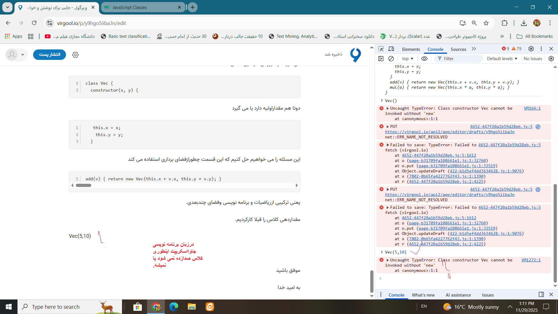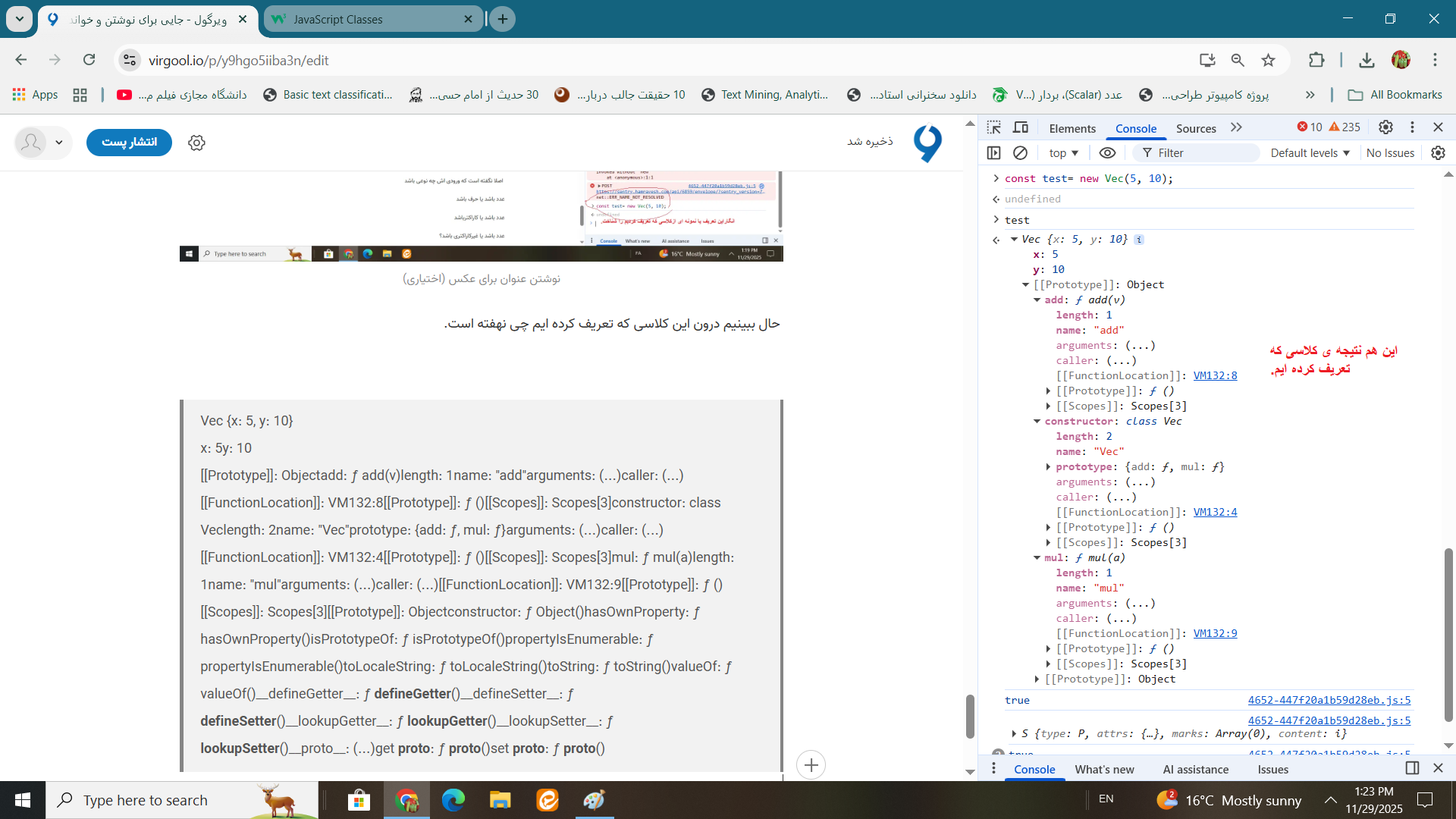 add(v) { return new Vec(this.x + v.x, this.y + v.y); }این یعنی یک برداربا دوتامقدار؟