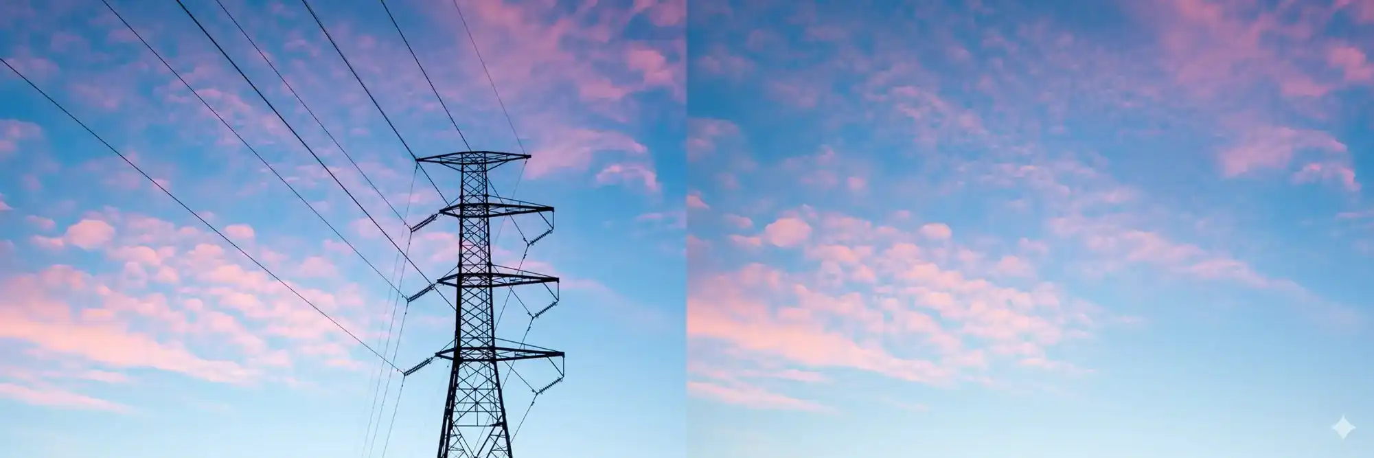 ترجمه: « لطفا سیمهای برق و دکل را از آسمان در این عکس منظره حذف کن.»