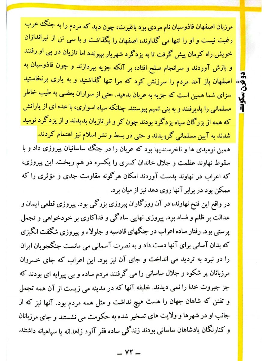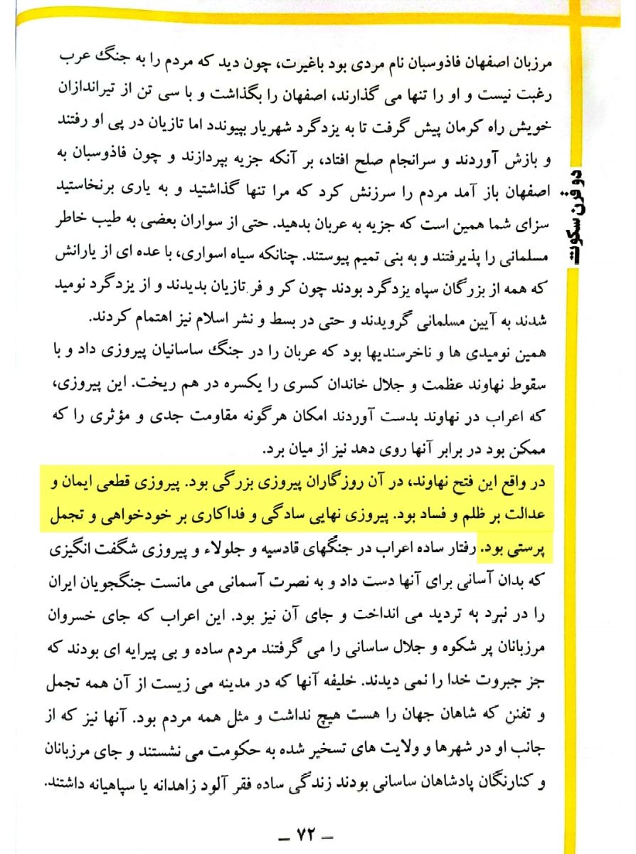• نا امیدی و ناخرسندی ملت،مهمترین دلیل پیروزی اعراب مسلمان بر ساسانیان بود:
