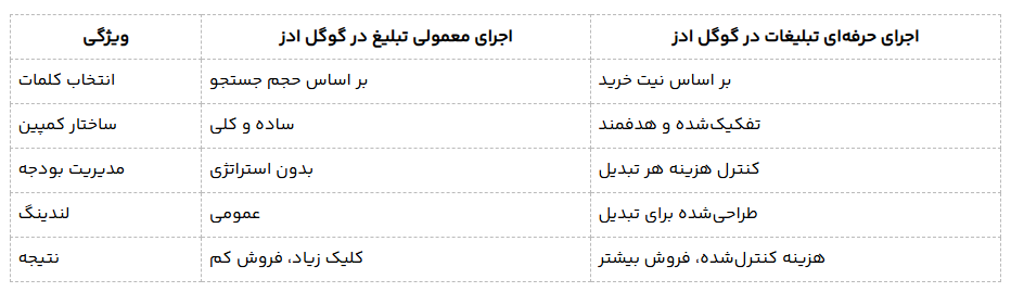 مقایسه اجرای غیرحرفهای و حرفهای تبلیغات در گوگل