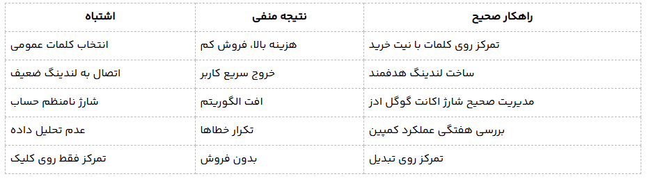 اشتباهات رایج در تبلیغات در گوگل ادز