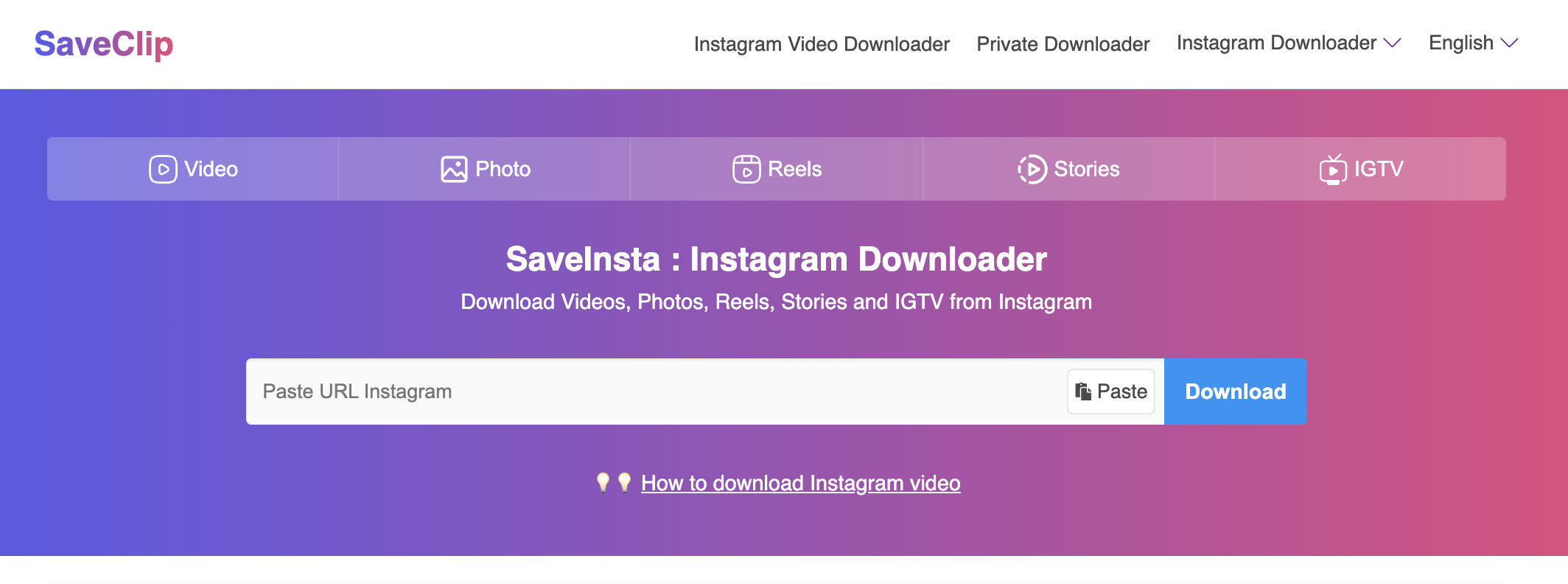 SaveClip یکی از ابزارهای معتبر بینالمللی برای دانلود هایلایت اینستاگرام است. این سایت رابط کاربری سادهای دارد و از دانلود با کیفیت HD پشتیبانی میکند. نیازی به ثبتنام ندارد و استفاده از آن رایگان است. از معایب آن میتوان به پشتیبانی محدود از زبان فارسی و وجود تبلیغات اشاره کرد. همچنین ممکن است برای دسترسی از ایران به فیلترشکن نیاز داشته باشید.
