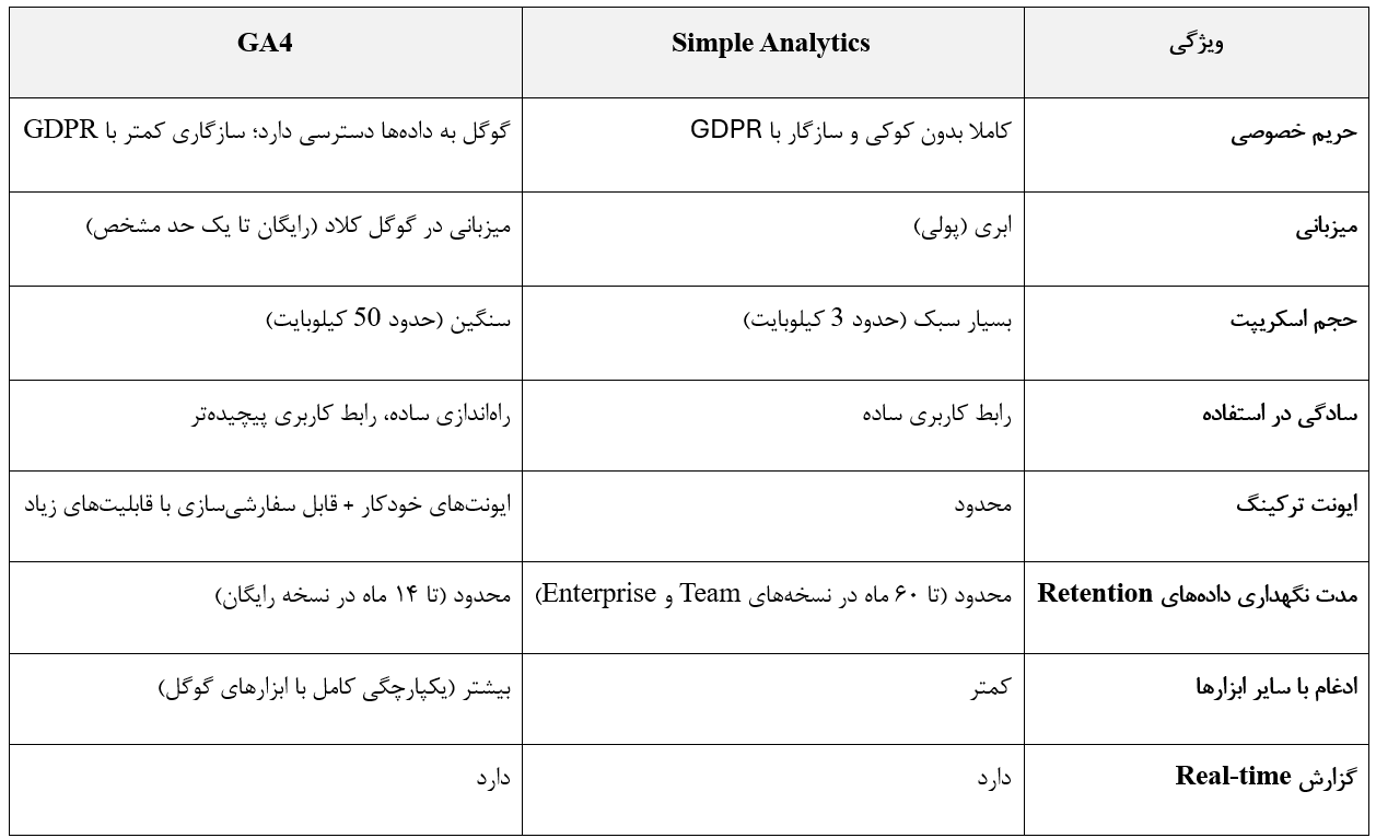 امکان وارد کردن دادهها از Google Analytics - تفاوتهای Simple Analytics و GA4