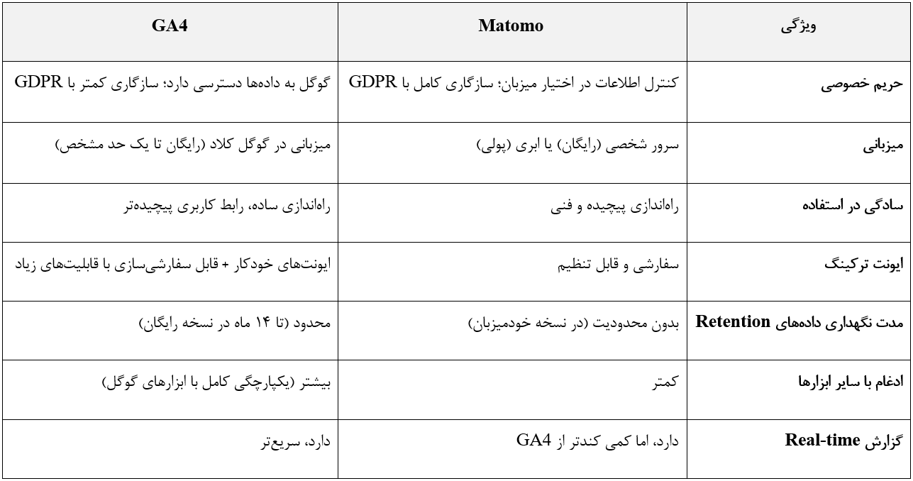 امکان وارد کردن دادهها از Google Analytics - تفاوتهای Matomo و GA4