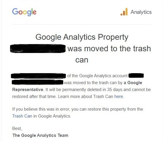 در فاز دوم و در هفته اول بهمن، گوگل تعدادی از اکانتهای باقیمانده را هدف قرار داد و ایمیل زد که اکانت آنالیتیکس شما توسط یکی از نمایندگان گوگل، به سطل زباله منتقل شده و بعد از 35 روز به طور همیشگی بسته خواهد شد؛ درحالی که هیچ راهی برای بازگردانی اکانت یا دادههای جمعآوری شده حتی در این بازه 35 روزه هم وجود نداشت و اکانت بهطور کامل حذف شده بود.