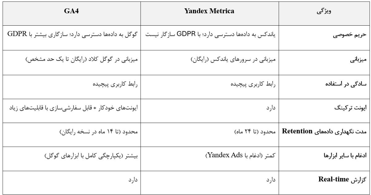 سازگار با Yandex Ads (مشابه Google Ads) - مقایسه یاندکس متریکا و GA4