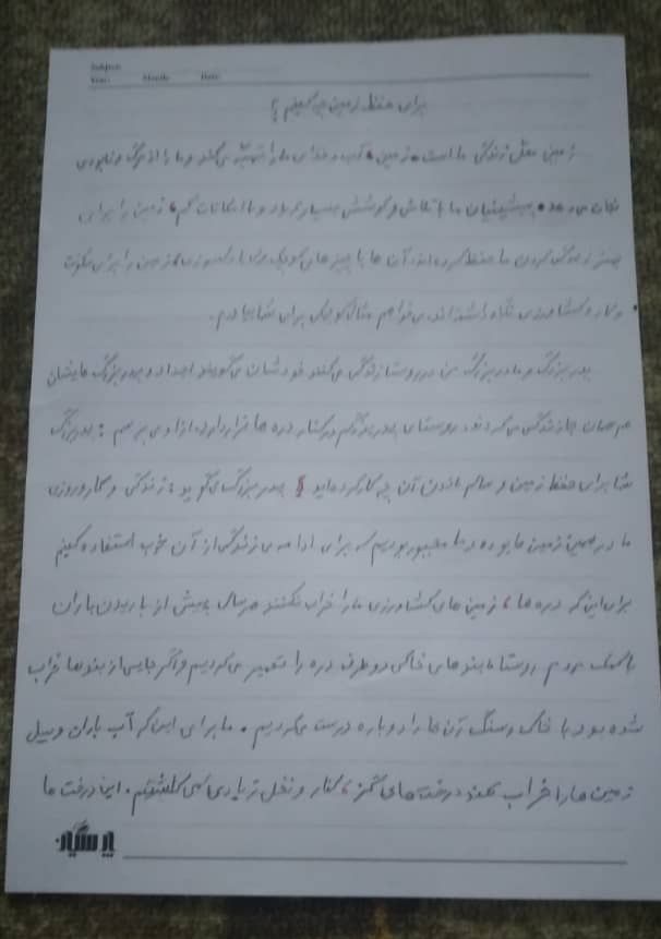 زمین محل زندگی ما است. زمین، آب و غذای ما را تهیّه می کند و ما را از مرگ و نابودی نجات می دهد. پیشینیان ما با تلاش و کوشش بسیار زیاد و با امکانات کم، زمین را برای بهتر زندگی کردن ما حفظ کرده اند.