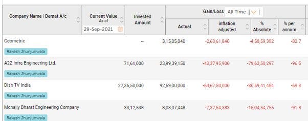 زمانی که این جزییات مورد نیازم را بدست آوردم فقط باید این معاملات را در وبسایت Value Research وارد کنم تا بتوانم به سادگی سود آن را محاسبه کنم هر چیزی را که به آن دست میزد تبدیل به طلا نمیشد درست مانند هر سرمایه گذر خرد دیگری حتی اشتباهاتی داشت راکش در برخی از سرمایه گذاری های خودش مانند شرکت های DISH TV یا A27 INFRA متحمل ضررهای بیش از نود درصد شد.اما پولی که او از چنین معاملاتی از دست داد در مقایسه با سودهایی که از شرکت های دیگر بدست آورد ناچیز بود
