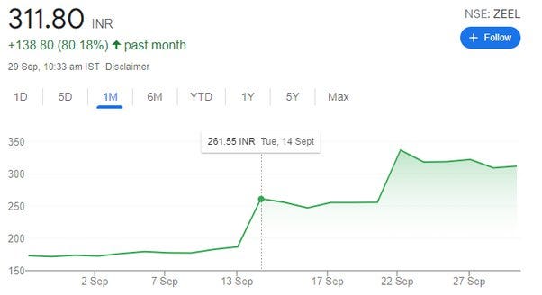 طبق گزارشات معاملات انبوه بازار بورس بمبئی راکش سهام این شرکت را در روز 14 سپتامبر 2021 با قیمت هر سهم 220 روپیه خریداری کرد در آن روز هر سهم کمپانی Zee با قیمت 260 روپیه بسته شده بود و در کمتر از یک هفته بعد قیمت هر سهم به 330 روپیه رسید و تقریبا یک سود 27 درصدی داشت اگر گزارشات معاملات انبوه سهام را دنبال می کردیم و طبق روش راکش جونجوالا عمل می کردیم می توانستیم سود خوبی بدست آوریم